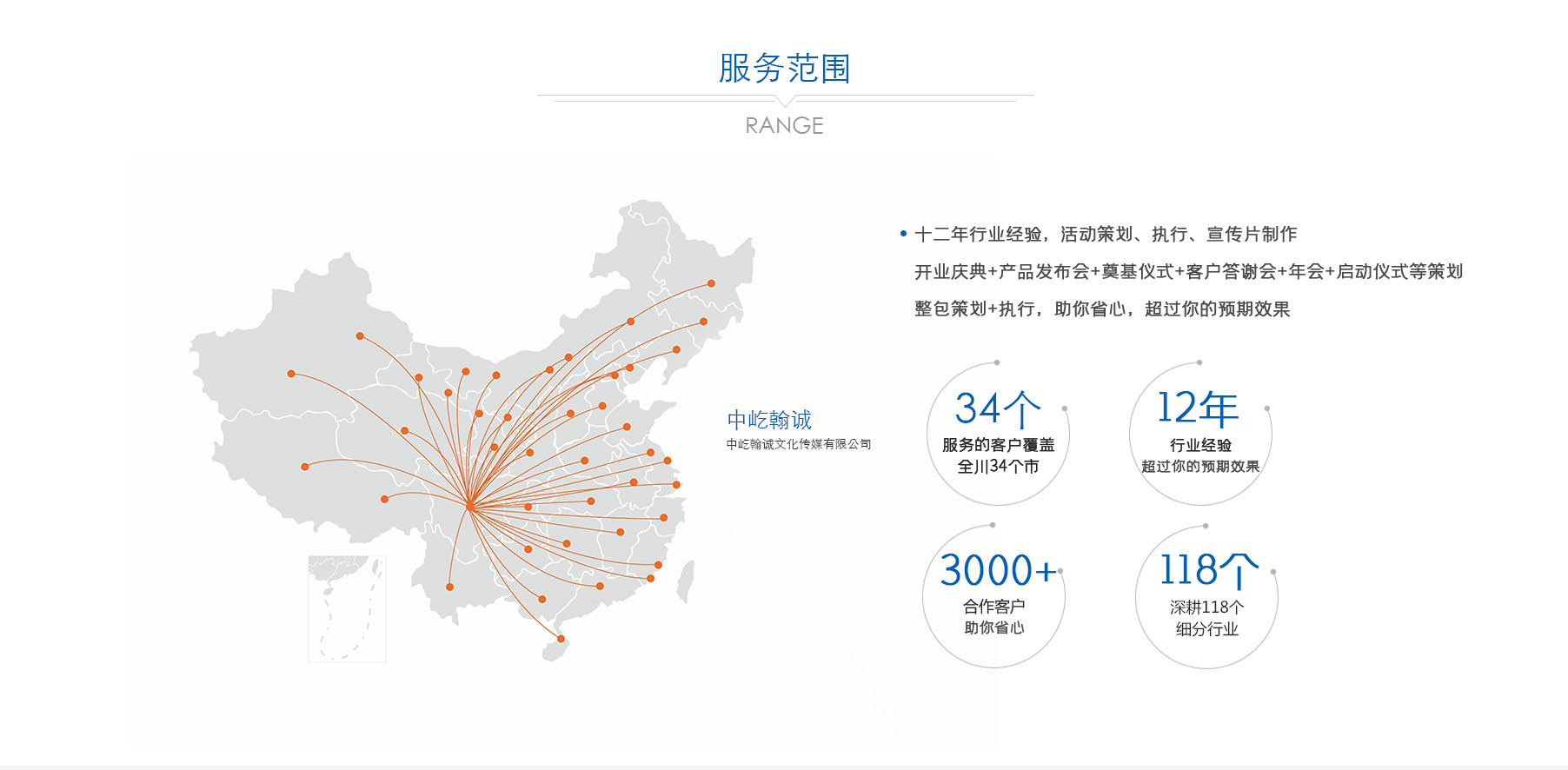 歷經多年深耕,公司已形成 “公關活動、展覽展示、品牌戰(zhàn)略服務、影視制作” 四大核心業(yè)務板塊。從創(chuàng)意策劃到落地執(zhí)行,從品牌塑造到視覺呈現(xiàn),從活動運營到影像記錄,中屹翰誠始終以專業(yè)視角與創(chuàng)新理念,滿足客戶多元化需求。憑借出色的服務品質與專業(yè)能力,公司在市場中穩(wěn)步前行,服務版圖已拓展至政府、金融、媒體、演藝、建筑等 118 個細分行業(yè),與超 3000 家客戶建立深度合作關系,以實力贏得廣泛認可與信賴。